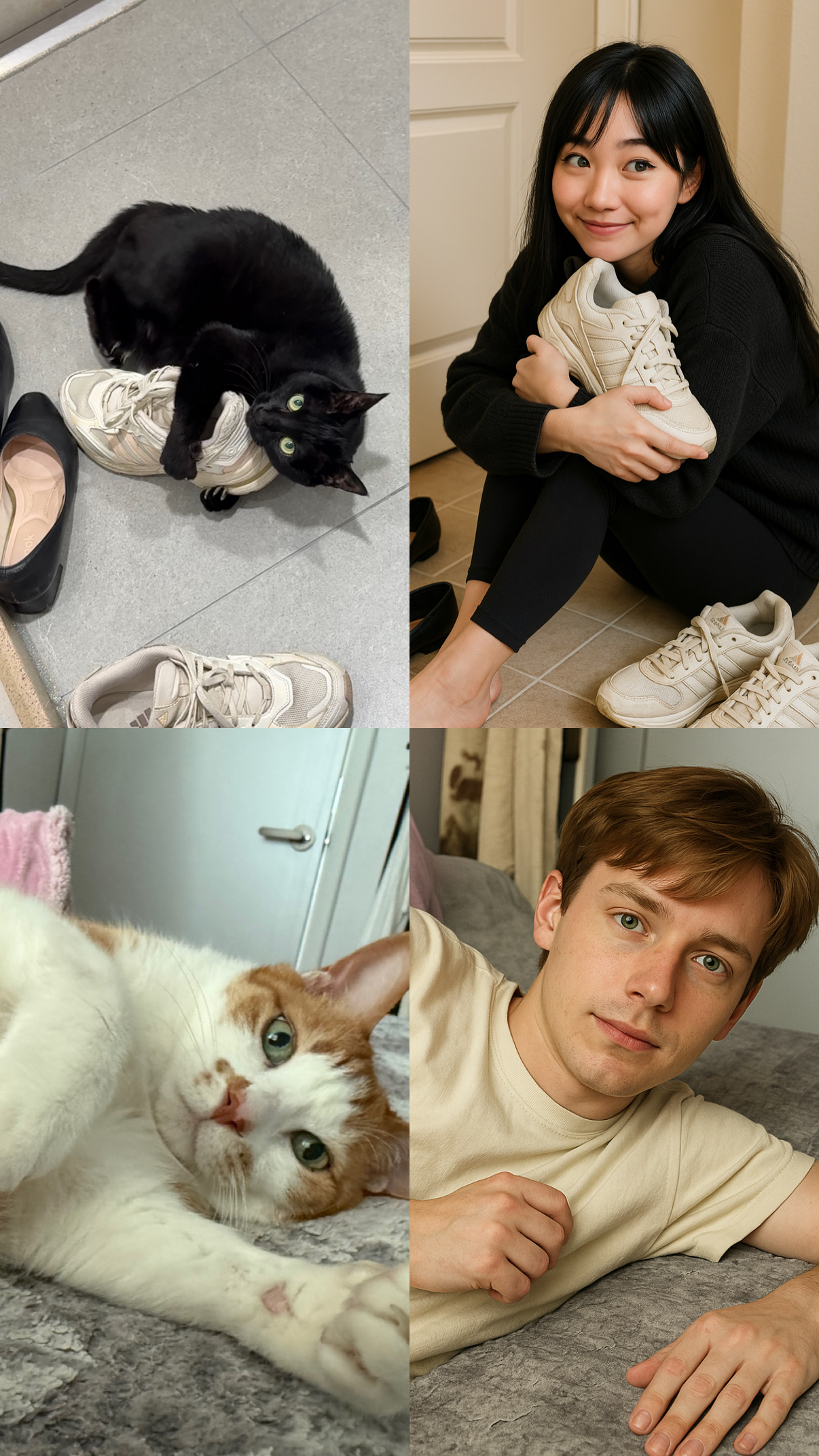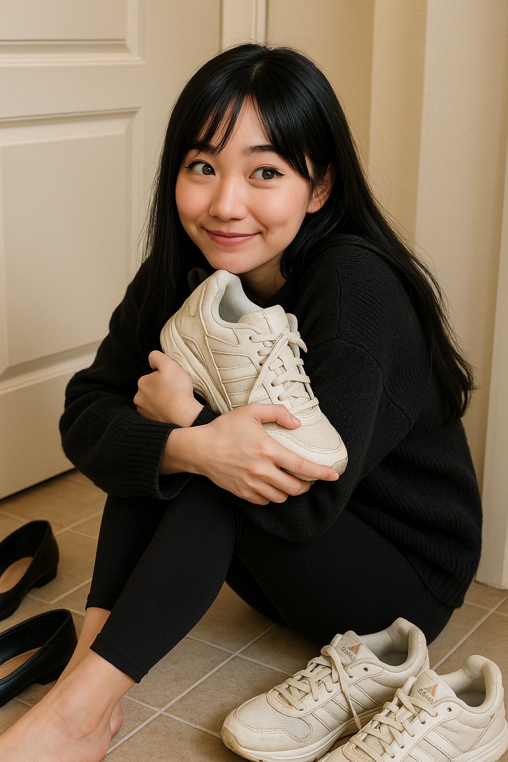 제 신발을 꼭 안고 있는 것까지 똑같아서 놀랐어요. 특히 검은 머리카락과 올블랙 패션, 반짝이는 눈이 굉장히 비슷해서 만족스러운 챗gpt 반려동물 AI 사진이었습니다. 실제로 우리 별이가 사람이라면 진짜 이런 모습일 것 같더라구요. 실제로 사람이 될 수는 없을지언정, 이렇게 인공지능의 힘을 빌려 의인화된 별이를 볼 수 있으니 기분이 묘했습니다.