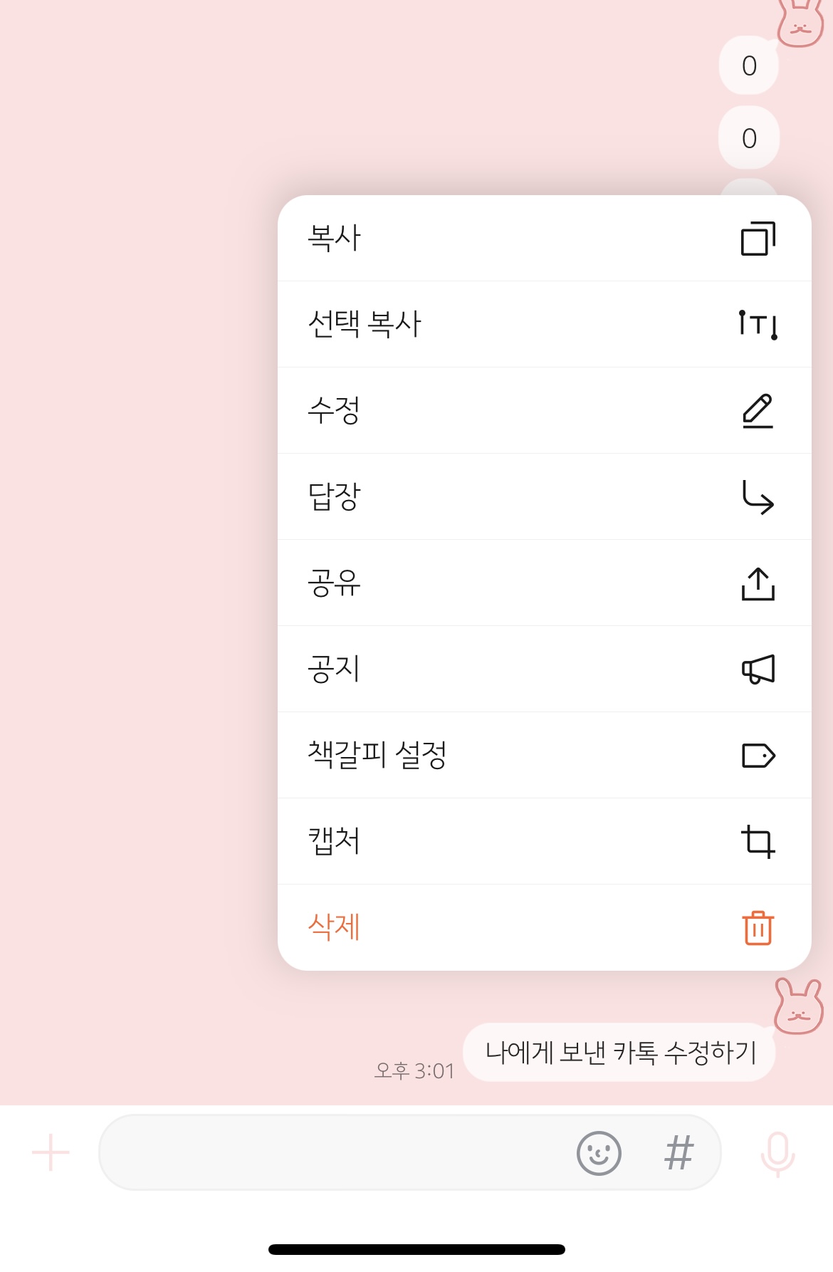 이 과정이 완료되면 말풍선 왼쪽에 '수정됨'이라고 뜨더라구요. 수정됨이라고 뜨지 않으면 이걸 수정한 건지 안한 건지 헷갈릴 수 있는데 센스 있게 표기가 되어있네요.