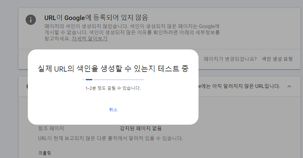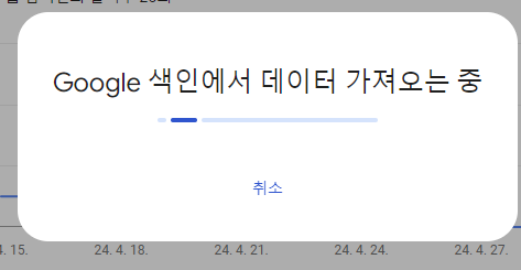 'Google 색인에서 데이터 가져오는 중' 조금 기다리면 다음 페이지로 넘어갑니다.