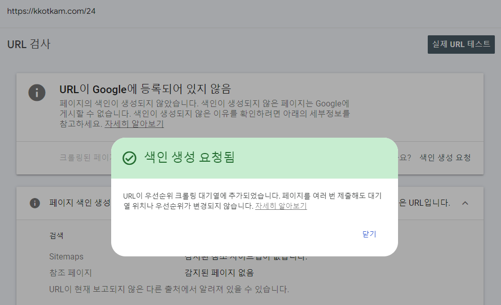 색인 요청이 완료되면 위 화면처럼 뜹니다.