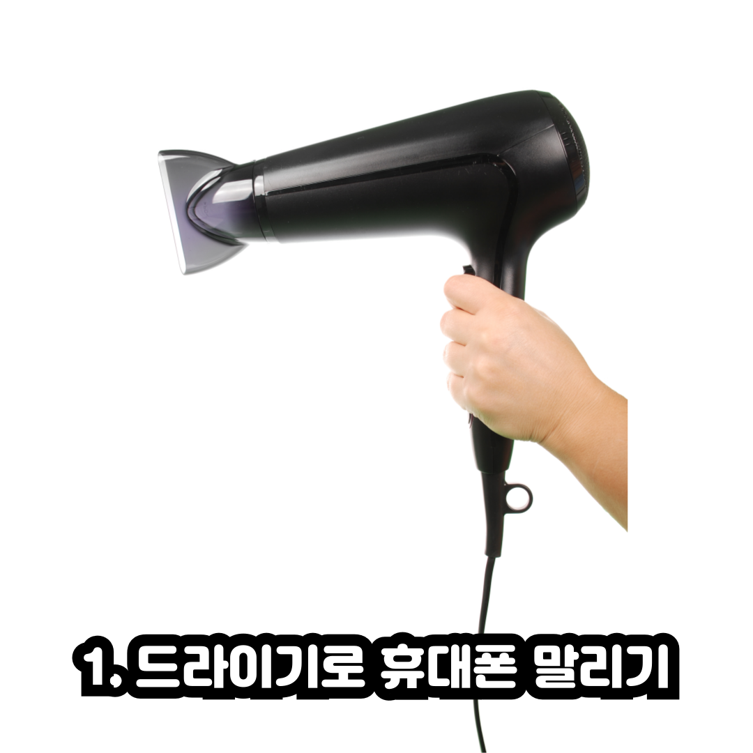 바람 세기는 약으로, 너무 뜨겁게 하면 휴대폰에 손상이 갈 수 있기 때문에 적당한 온도로 말려주시는 게 포인트입니다.