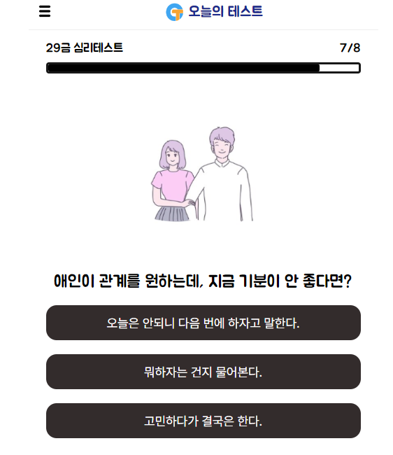 7번 문항 : 애인이 관계를 원하는데, 지금 기분이 안 좋다면?