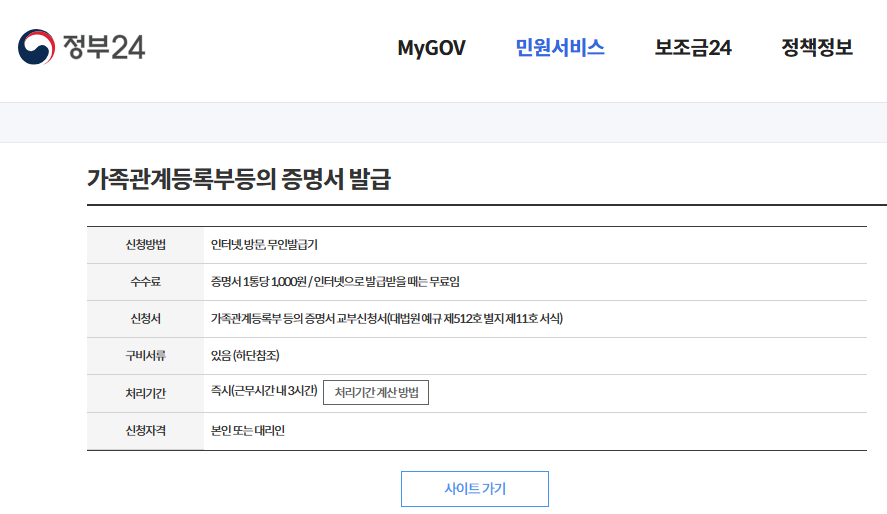 가족관계증명서 인터넷발급 방법