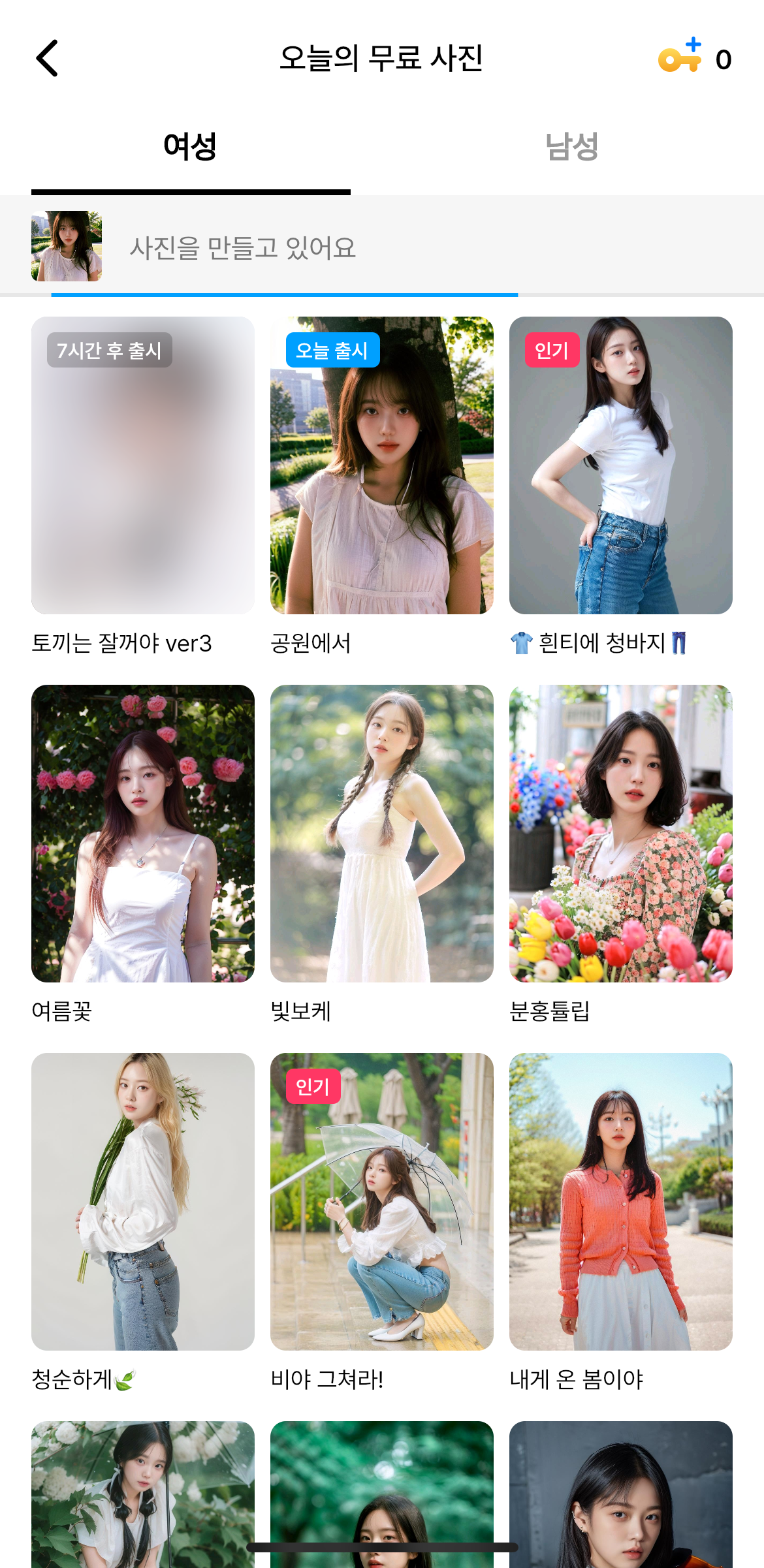 하루 1장씩 주는데 열쇠가 왜 필요하냐구요?? 매일 접속해서 사진 만드는 것을 깜빡할 때가 있는데, 그럴 땐 열쇠가 필요하겠더라구요. 마음에 쏙 드는 컨셉을 놓치고 싶지 않으니까요 :)