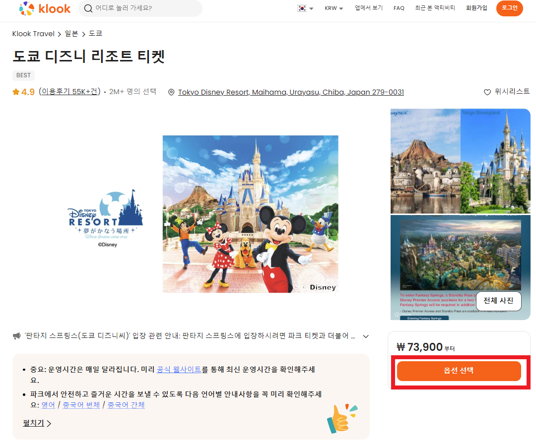 클룩 도쿄 디즈니랜드 예약 바로가기