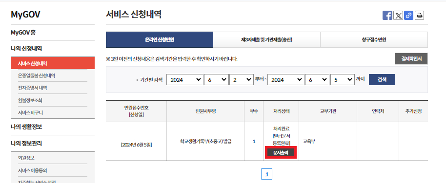 정부24 초등학교 중학교 고등학교 생활기록부 발급 방법