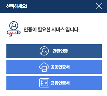 간편인증, 공동인증서, 금융인증서 중 선택해서 인증한 후 바로 출력이 가능합니다.