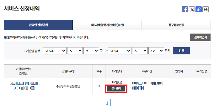 그렇게 완료된 문서는 '출력' 버튼을 눌러주면 인쇄가 가능합니다. 동사무소에 방문할 필요도 없고, 수수료도 들지 않고, 즉시 업무가 처리되기 때문에 정말 편한 방법이에요.