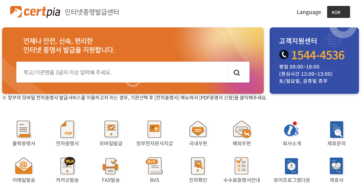 두 번째는 써트피아에서 발급받는 방법인데요. 이 방법은 PC에서 바로 출력 및 PDF 저장도 가능합니다.