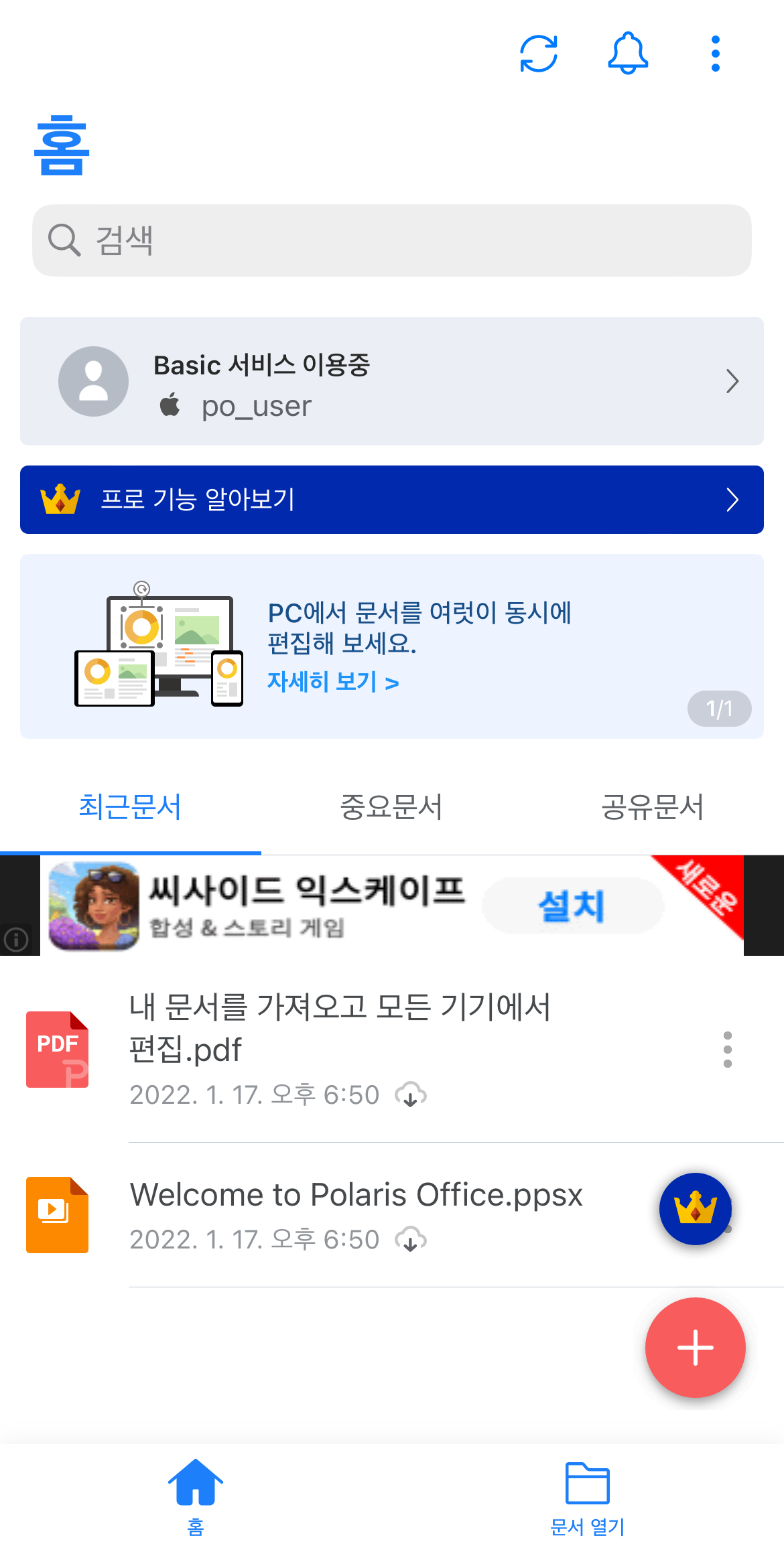 무료 PPT 워드 엑셀 한글 폴라리스오피스 폰으로 엑셀 열기, PPT 수정