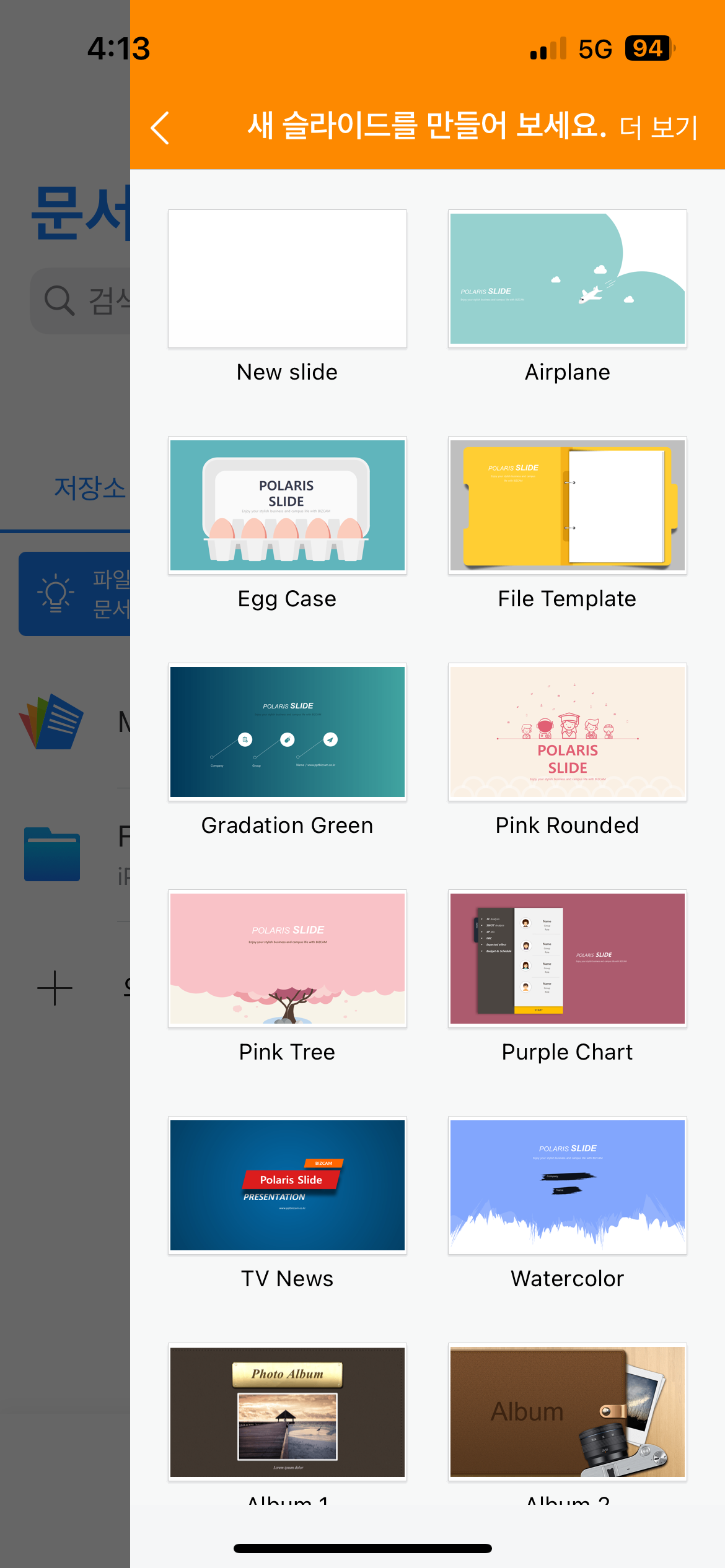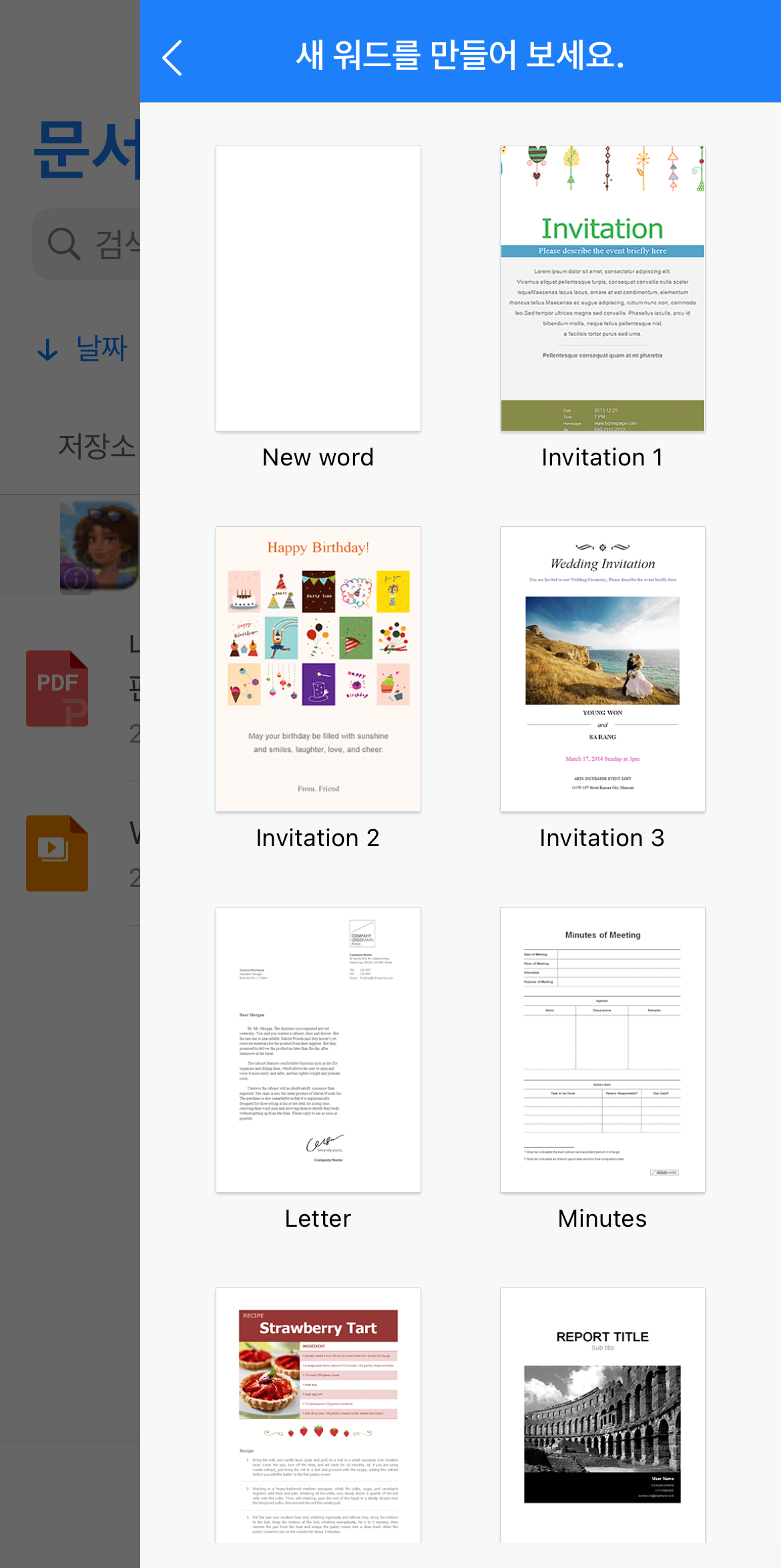 이뿐만 아니라 PPT와 워드, 엑셀의 경우 템플릿 선택도 가능해요! 폰이라고 해서 더 이상 어렵게 문서를 생성할 것이라는 편견은 없다는!! 갑자기 문서를 작성해야 할 경우 혹은 문서에 오타가 있어서 수정해야 하는 경우 컴퓨터 없이도 폰으로 빠르게 해결할 수 있습니다. 요즘 세상이 참 스마트한 것 같아요 ㅎㅎ