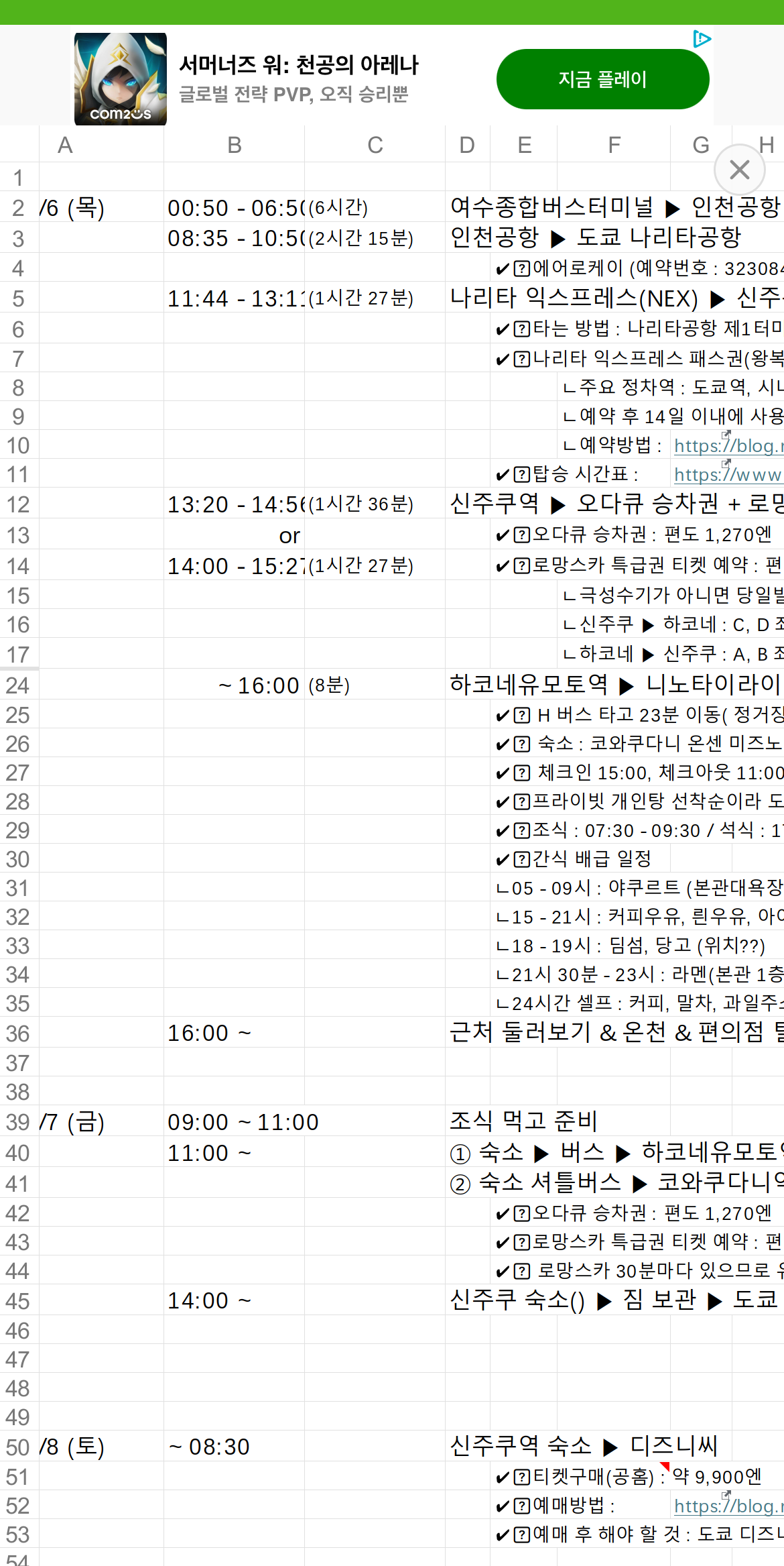 PC에서 엑셀 작업을 하고 폰으로 보낸 후 폴라리스오피스 앱으로 열면 이런 식으로 뜹니다. 폰 화면이 작아서 다소 보기 불편하긴 하지만 탭으로 하면 화면이 커서 편할 것 같네요.