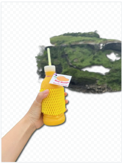 배경을 합성하니 망고쥬스 광고 포스터 같네요 ㅎㅎ 퀄리티가 참 괜찮더라구요. 화질도 많이 떨어지지 않고 자연스러워요.