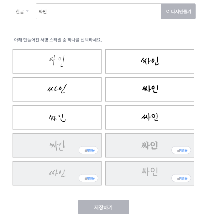 '싸인 그리기'를 통해 손글씨로 만들어도 되는데요. 마우스로 그리는 게 불편하신 분들은 '싸인 만들기'로 컴퓨터가 만들어주는 싸인을 적용해도 된답니다. 손맛은 없지만 오히려 깔끔하고 예쁘더라구요.