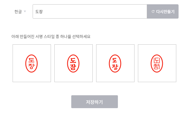 전자도장도 마찬가지로 문구만 적으면 뚝딱 만드렁지는데요. 글씨체도 다양하고 원하는 디자인으로 선택하면 됩니다.