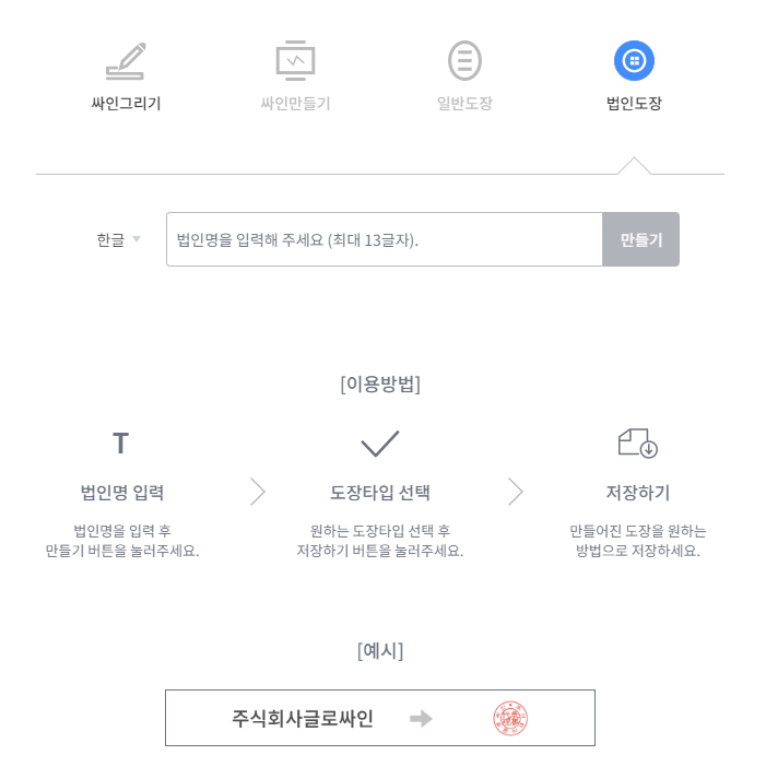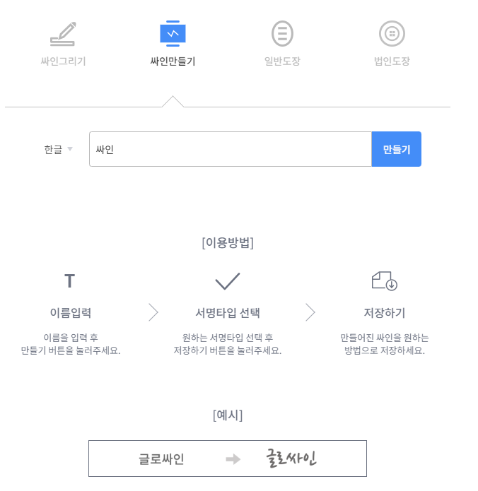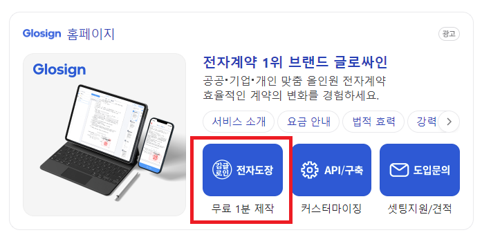 전자서명 만들기 무료 사이트 글로싸인 도장 법인도장 뚝딱!