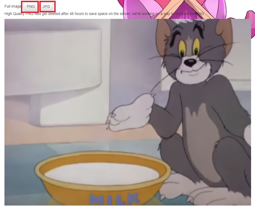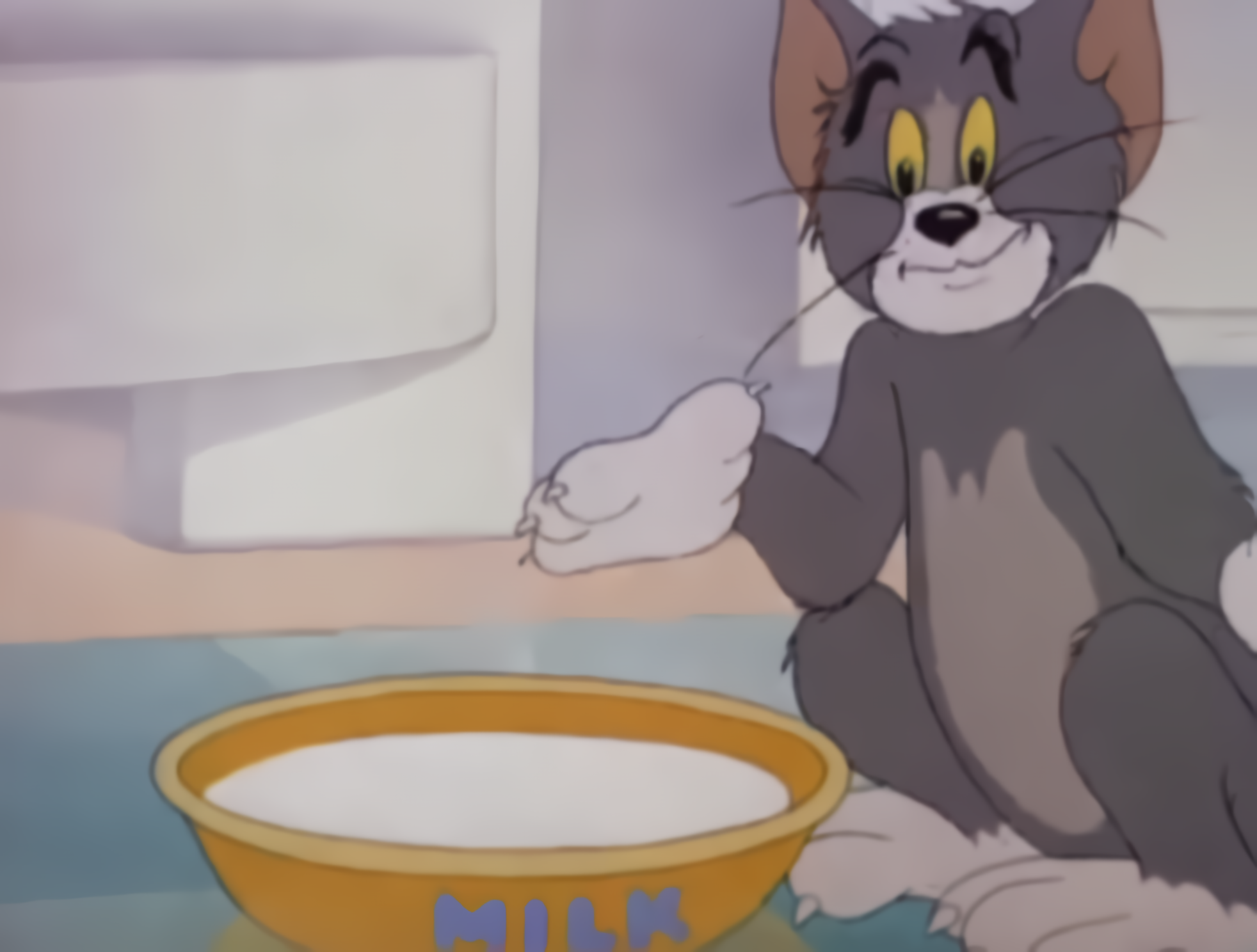 2회 진행했더니 MILK 글씨가 확실히 선명해졌죠? 톰의 그림체나 주변 노이즈도 많이 개선됐어요. 1회만으로 부족하다고 판단되면 여러 번 덮어도 되니 사진 화질 높이기 & 이미지 고화질 변환 사이 현명하게 이용해보세요 :)
