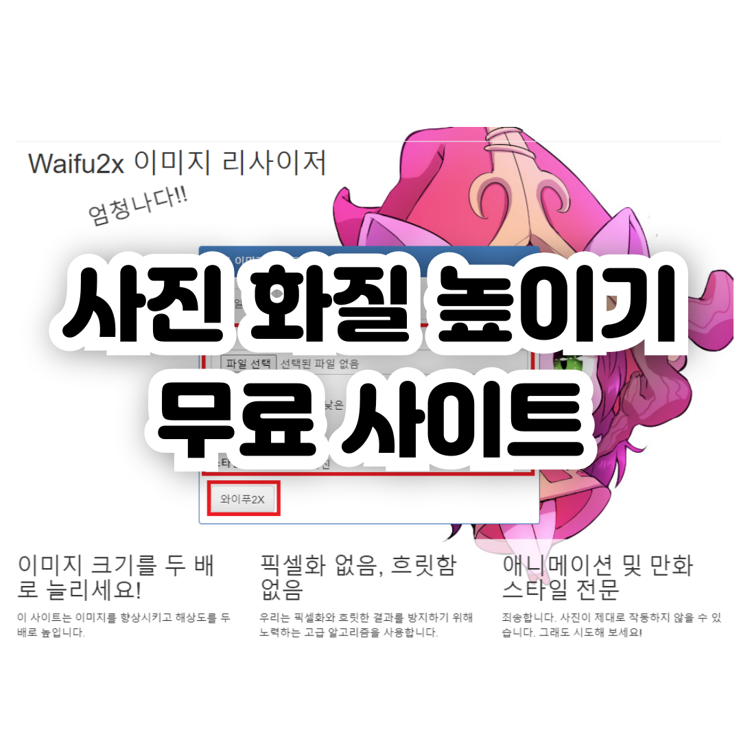 사진 화질 높이기 이미지 고화질 변환 사이트 무료 Waifu2x