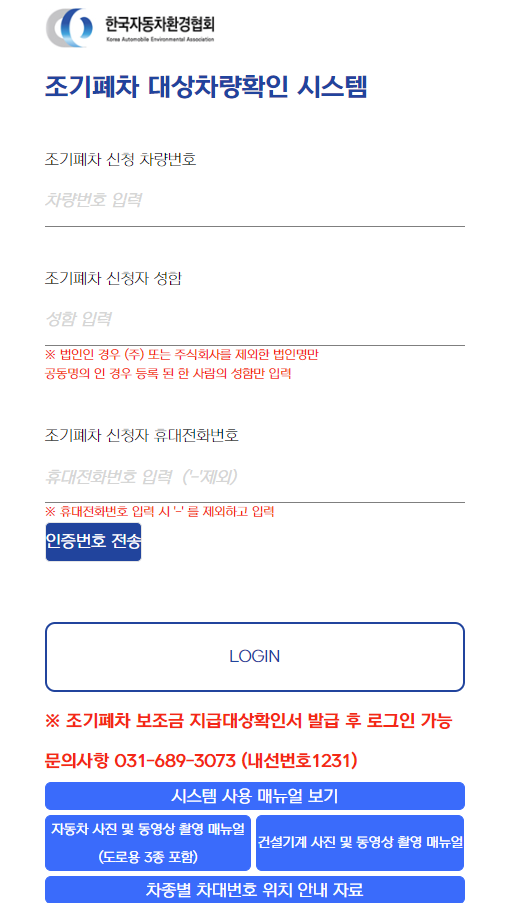 ** 단, 조기폐차 지원금은 차량 명의자 본인 계좌로만 지급 가능