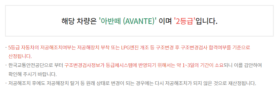 제 차량을 조회해보았는데 2등급이라서 조기폐차 보조금을 받을 수 없습니다.