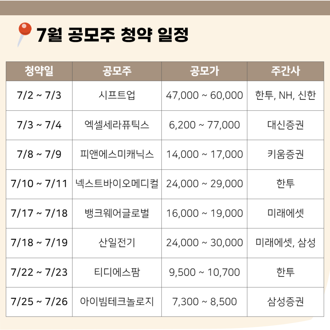 7월 공모주 청약 캘린더