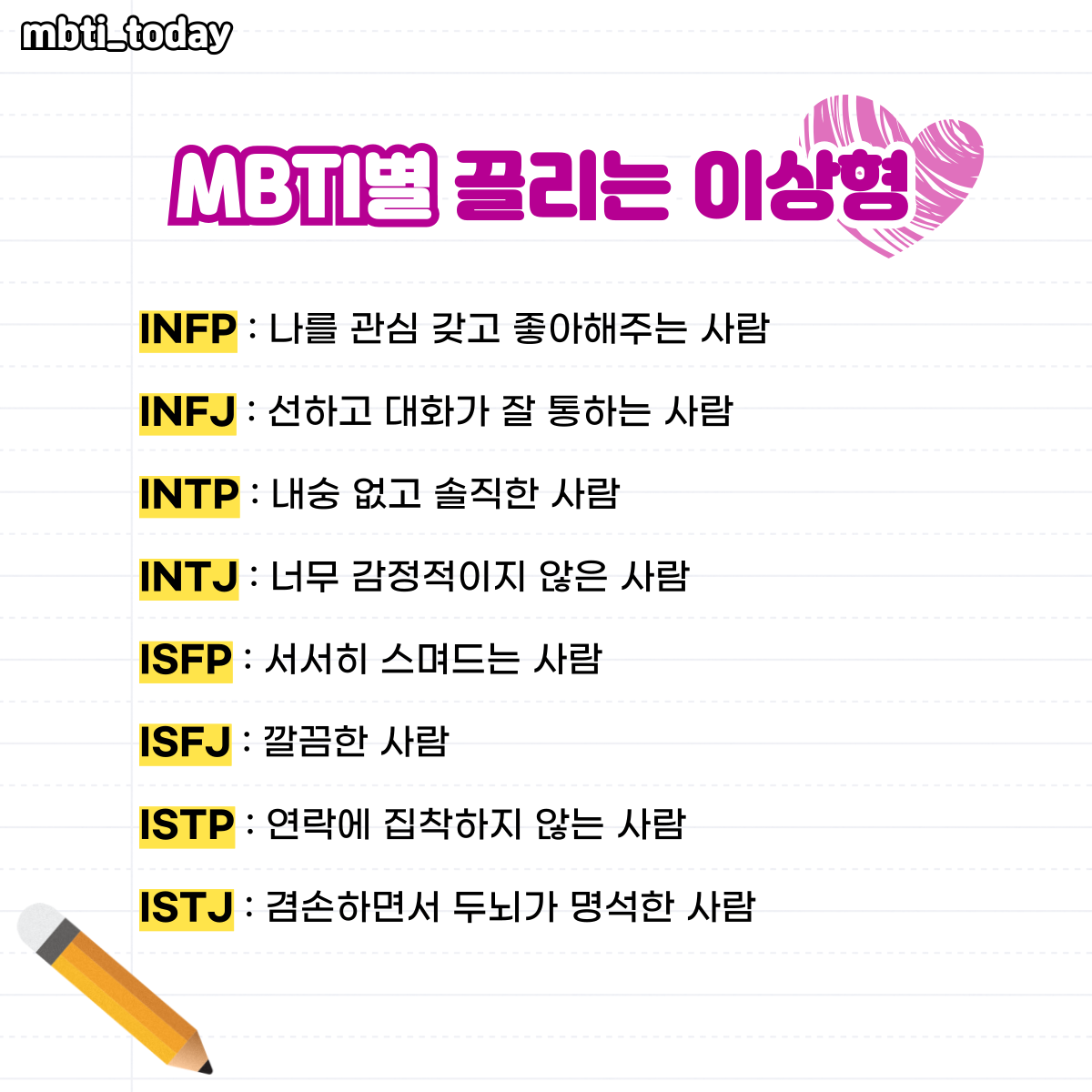 MBTI 이상형, MBTI 테스트 모음