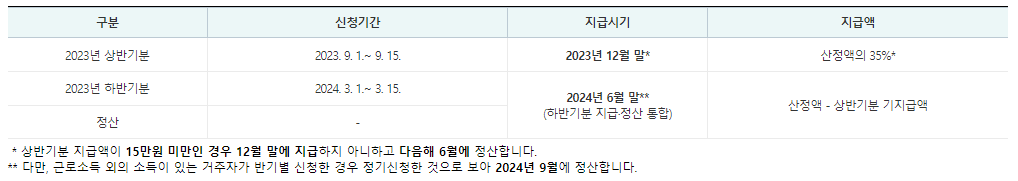 - 반기 근로장려금 지급일 : 10월 이후 ~ 신청일자에 따라 내년까지 지급