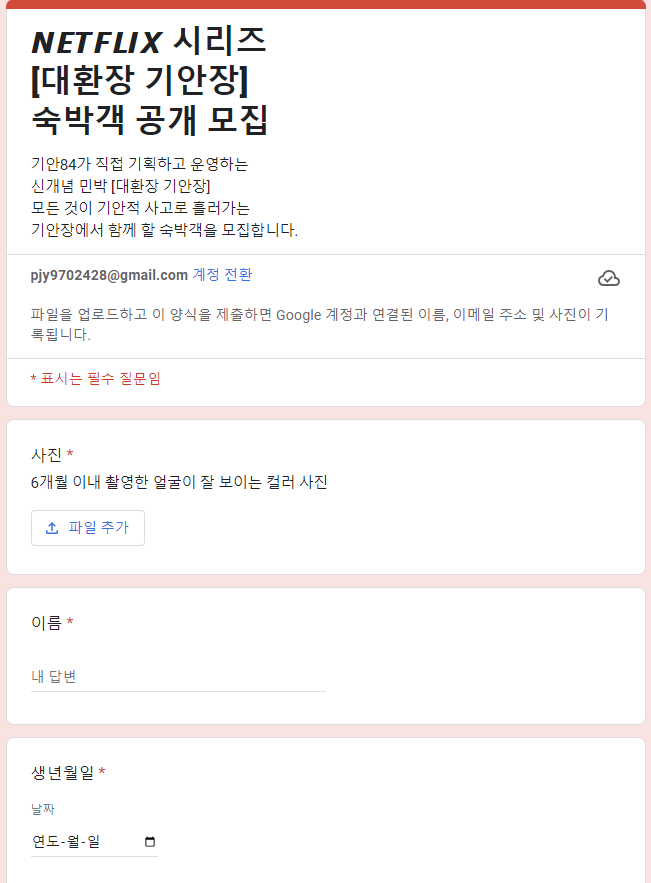 대환장 기안장 신청 면접 촬영시기 기안84 넷플릭스 민박 모집