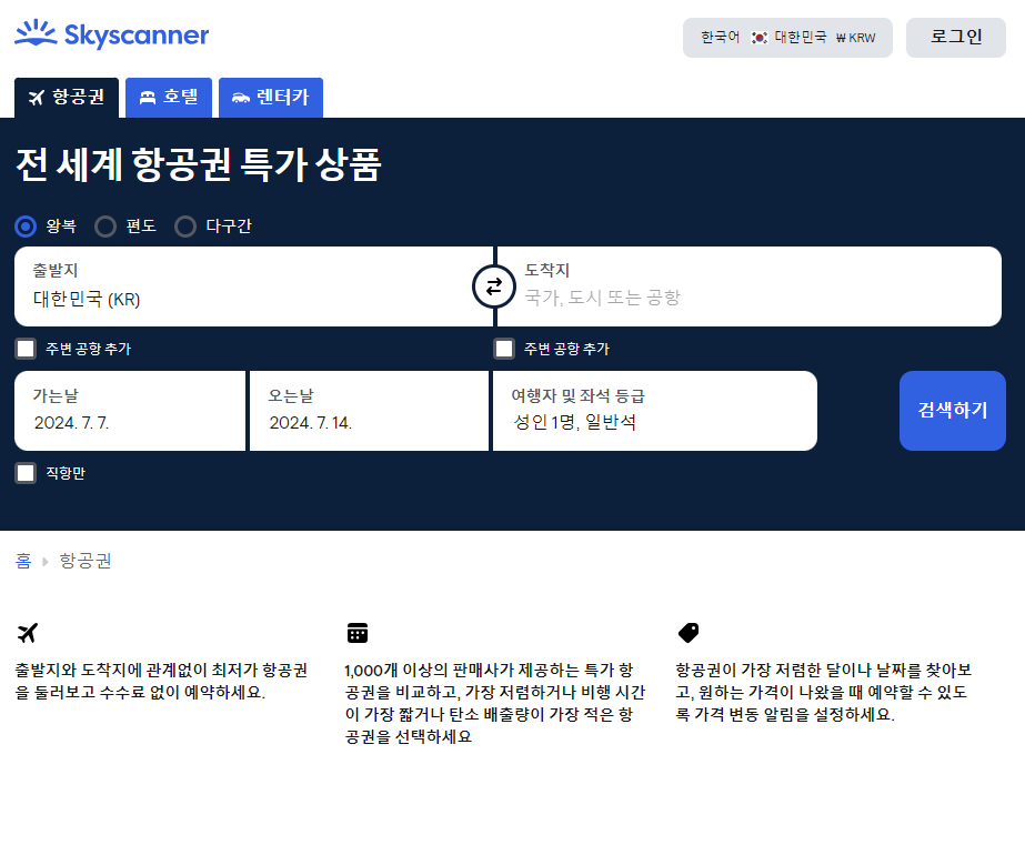 항공권 가격비교 사이트 스카이스캐너 주의사항