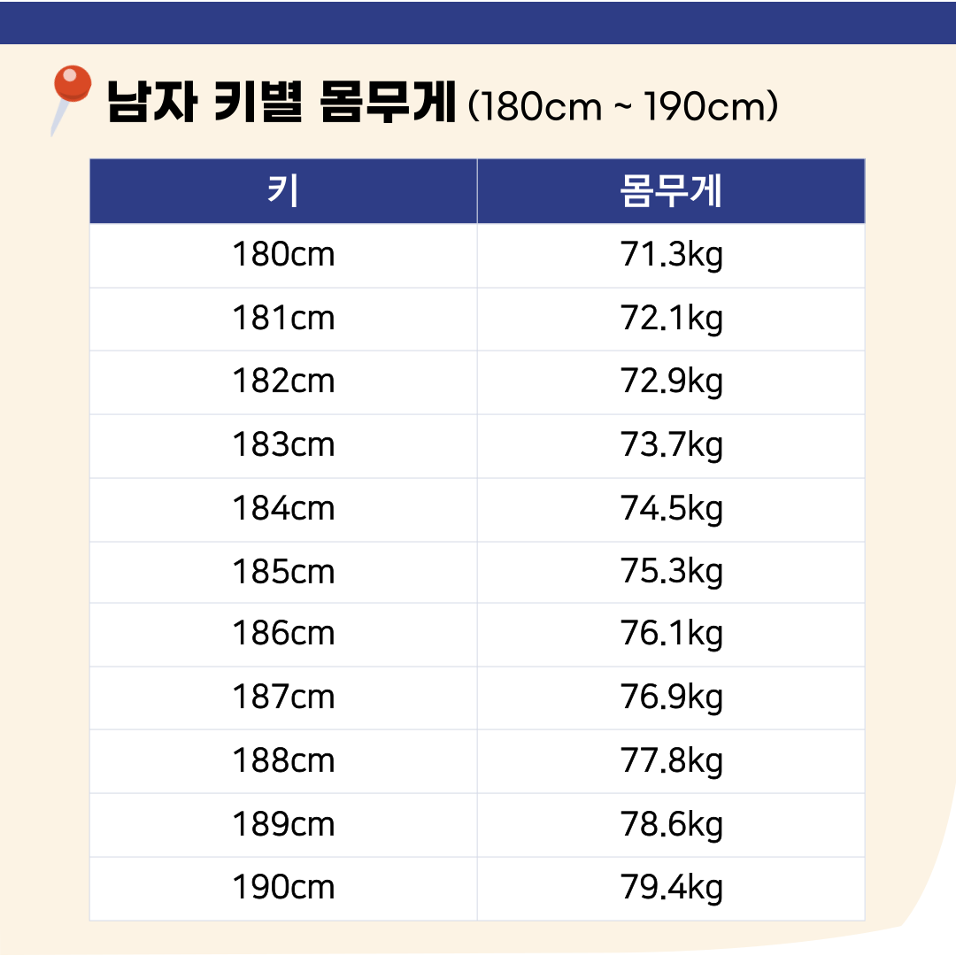 남자 키별 몸무게(180cm ~ 190cm)
