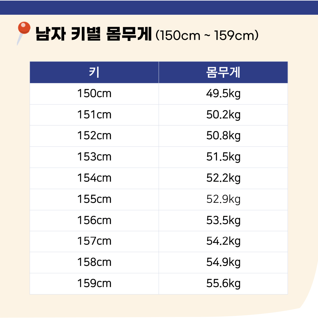남자 키별 몸무게(150cm ~ 159cm)