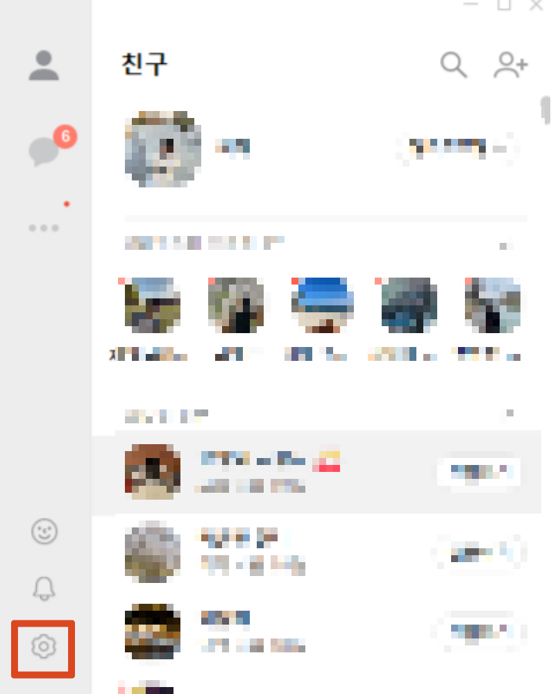1. PC 카톡 좌측 하단 톱니바퀴 아이콘 > 화면 Click