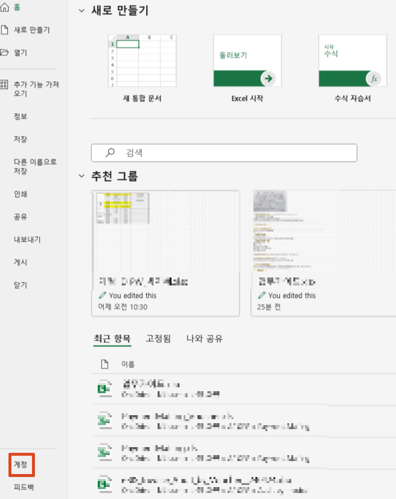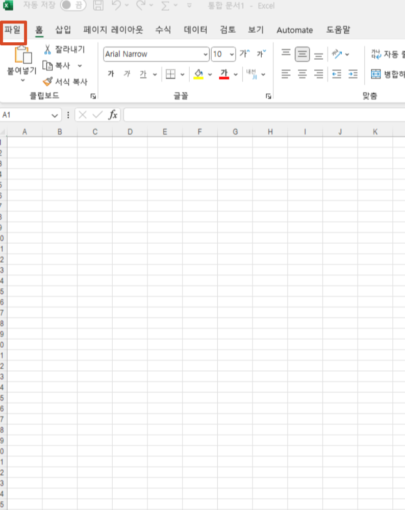 1. 엑셀 > 좌측 상단 '파일' 버튼