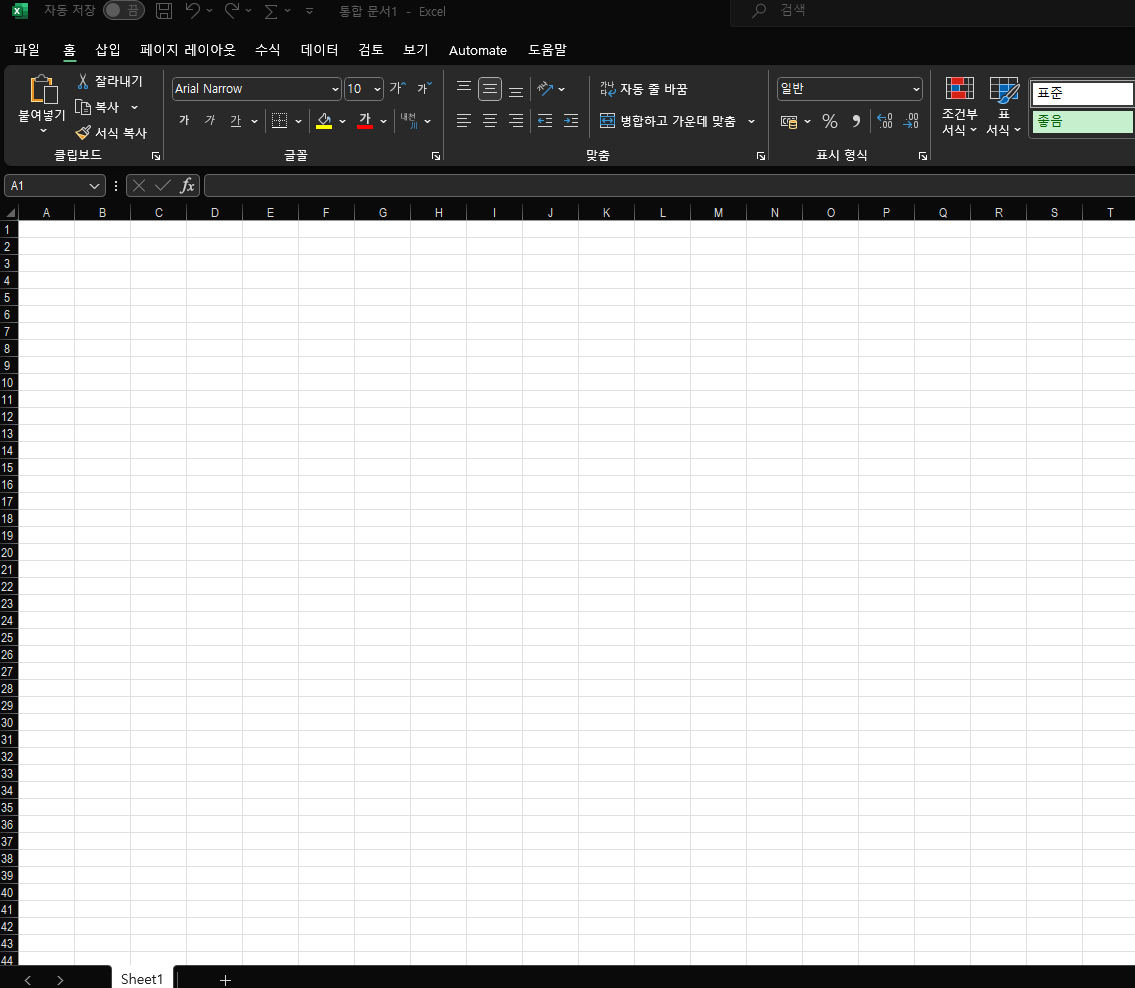 엑셀 블랙 테마 설정이 완료되었어요. 이거 하나만 설정해도 위에 언급한 마이크로365의 여러 앱들이 자동으로 다크모드가 적용되기 때문에 편하더라구요. 다만 하나씩 색상 지정은 불가하기 때문에 사람에 따라 조금 불편할 수도 있겠네요.